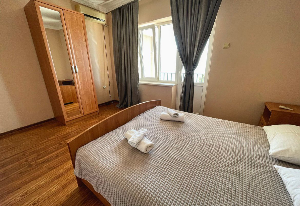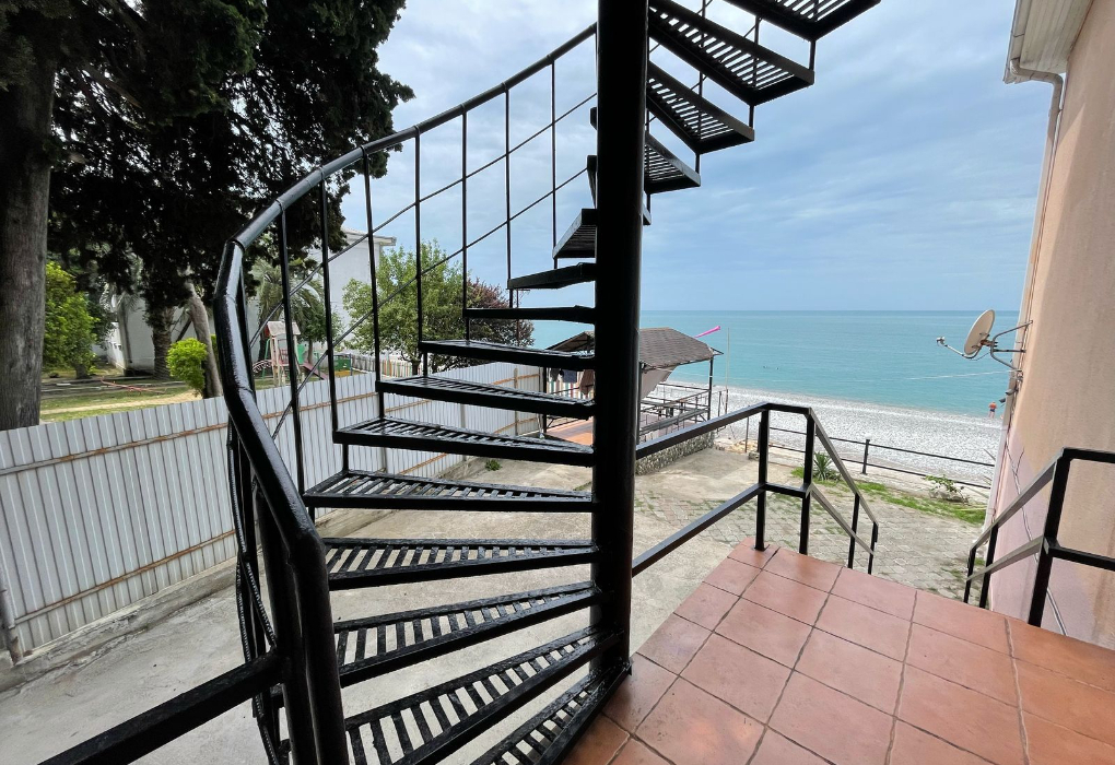 Расстояние до пляжной линии с мелкой галькой и прозрачной теплой водой всего 10 метров. На пляже есть шезлонги и зонтики для комфортного отдыха.