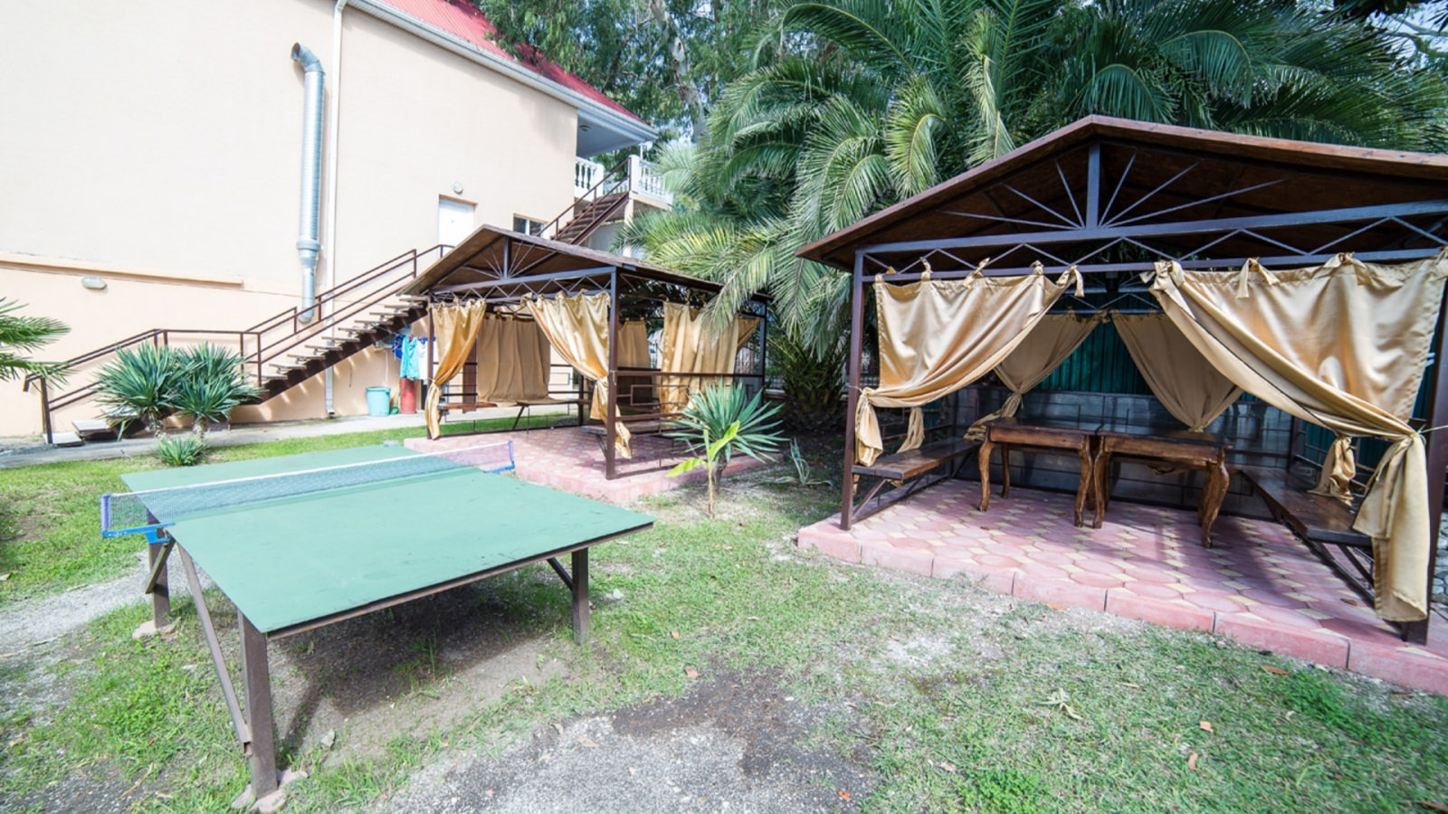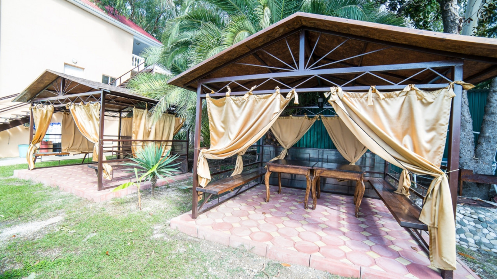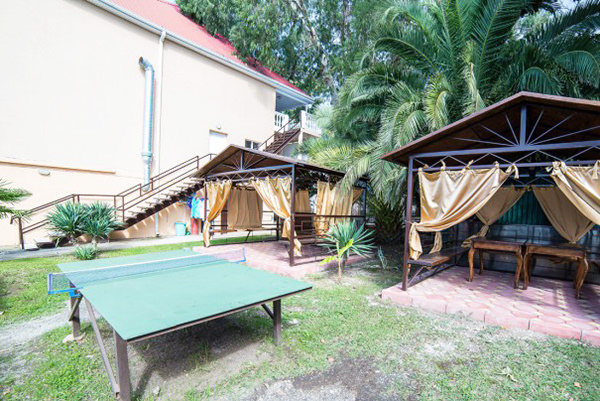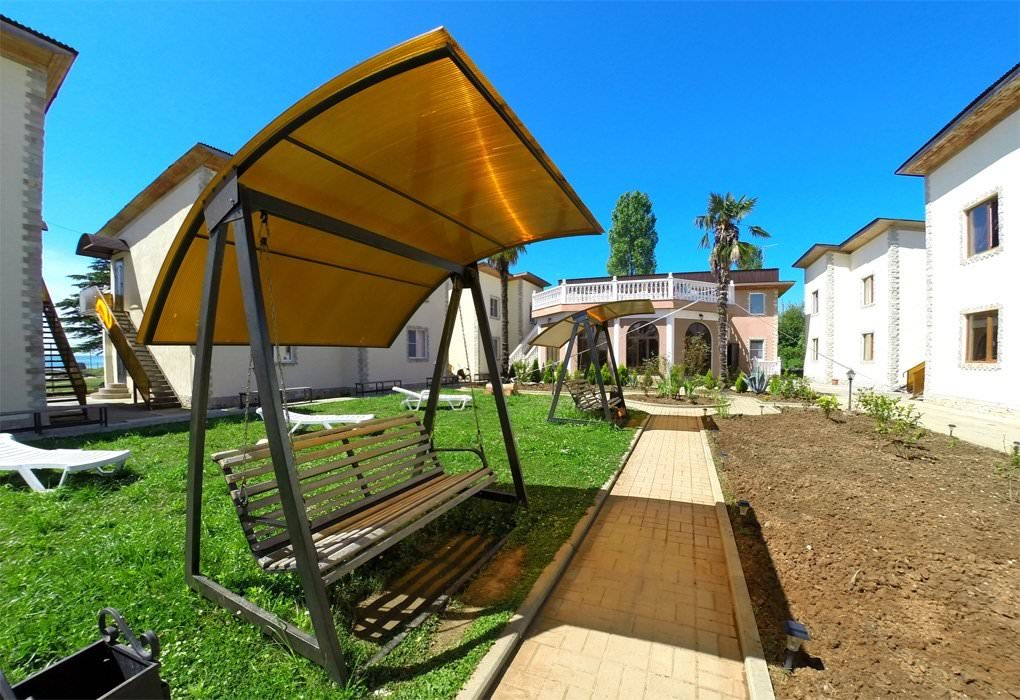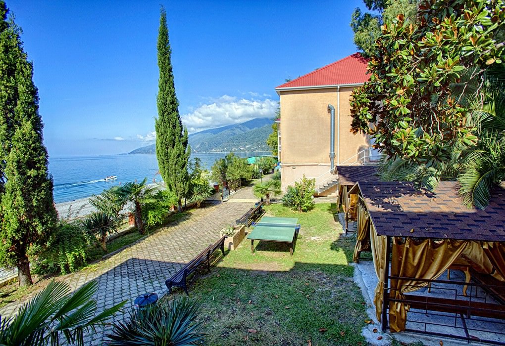 «Апсны-Абазашта» — уютный мини-отель для бюджетного семейного и романтического отдыха, расположенный в центре популярного курорта Абхазии. Комплекс имеет огороженную территорию с ландшафтным дизайном, крытыми беседками, качелями и стоит у самого побережья Черного моря. Тенистый сад из кипарисов и пальм, цветущей юкки и магнолий позволит укрыться от летней жары в любое время.
